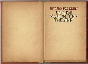 And this externalising does lead rather neatly into what you were saying about acting (which I guess does apply to our real-life actions, too). At university, all those generations ago, I studied a text by Heinrich von Kleist (one of my favourite irrationalists) called Über das Marionettentheater (On the Puppet Theatre), the essence of which is that humans are basically incapable of gracefulness because they are always thinking, whereas puppets will always be graceful because they have no thought.