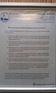 on East 15th Street (to whose small library I contributed a copy of my book), and being overfed, on that first afternoon, by the guy at the sandwich counter at the Food Emporium (the salami sandwich and the extra roll I got were my lunch on Day 1 and my breakfast and lunch on Day 2), everyone, without exception, even people I accidentally bumped into in my myopic wanderings, was unfailingly friendly and helpful. Even people in suits who, in London, to my dismay, are invariably aggressive and shouty and in too much of a hurry even to look you in the eye (and that is painful to say for me, who adored London and lived there for a long time).
